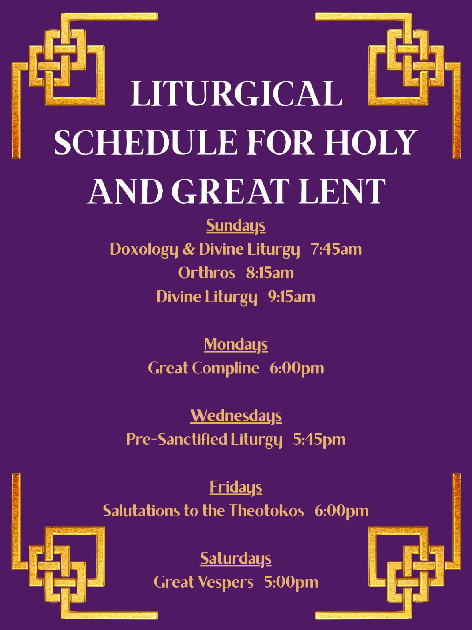 Liturgical Schedule for Great and Holy Lent